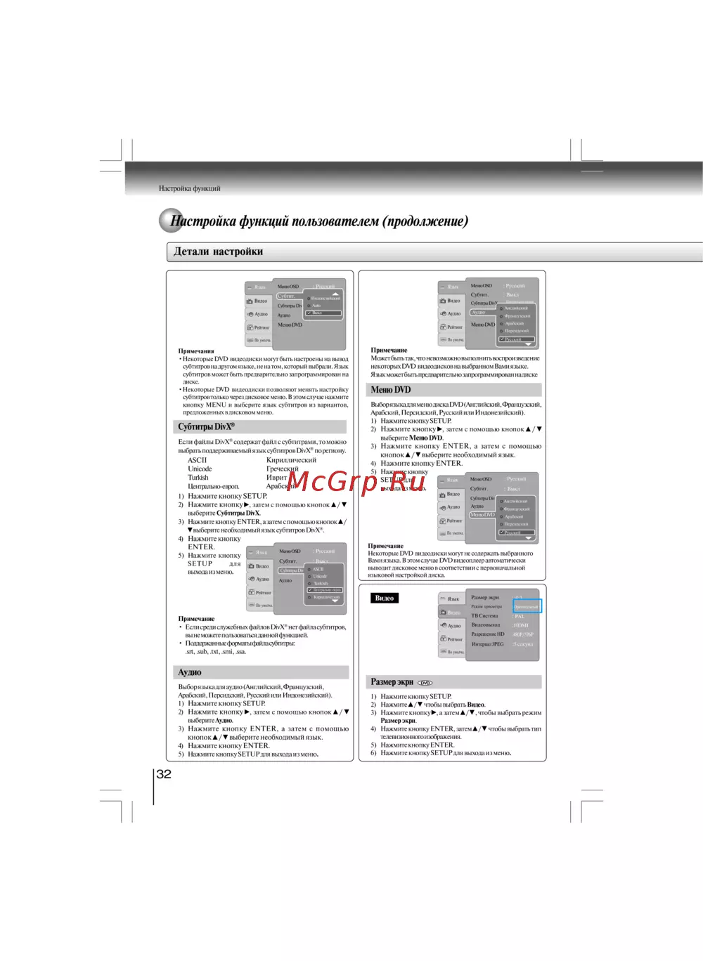Toshiba SD-890KR [32/40] Íàñòðîéêà ôóíêöèé ïîëüçîâàòåëåì ïðîäîëæåíèå
