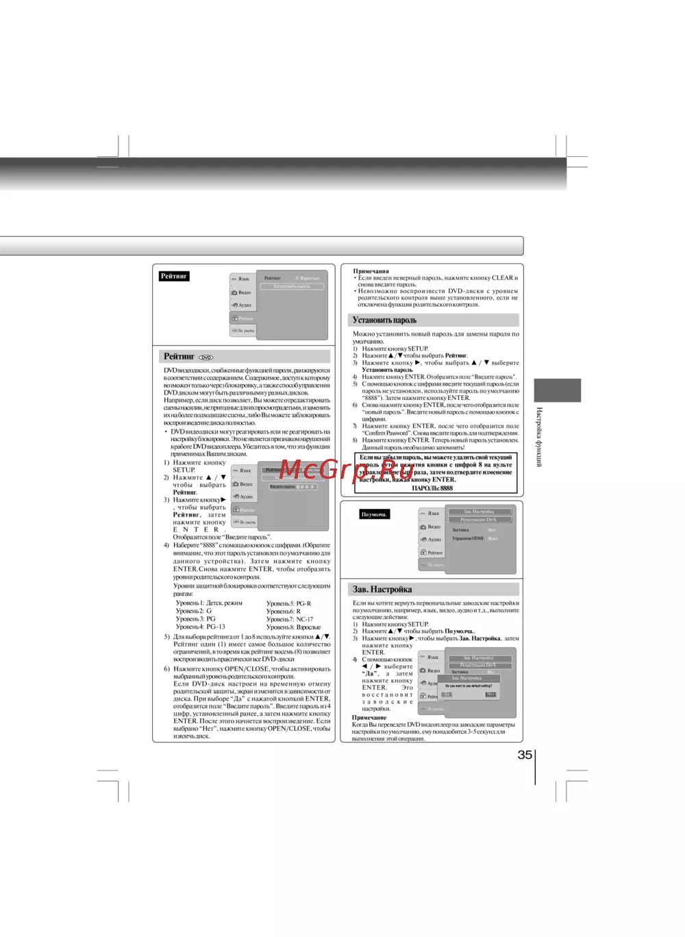 - Óñòàíîâèòü ïàðîëü p.35