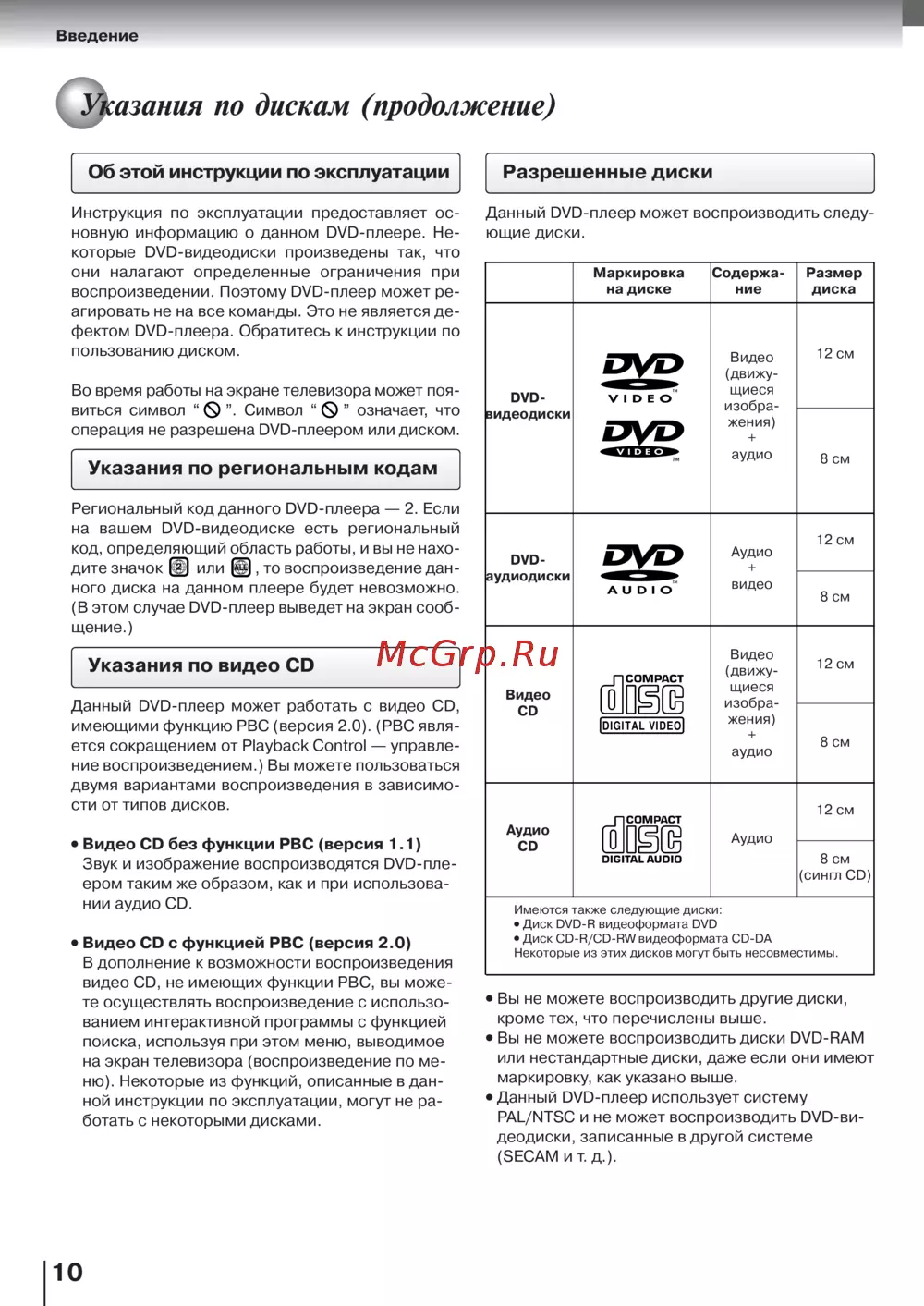 Toshiba SD-9500 [10/72] Разрешенные диски
