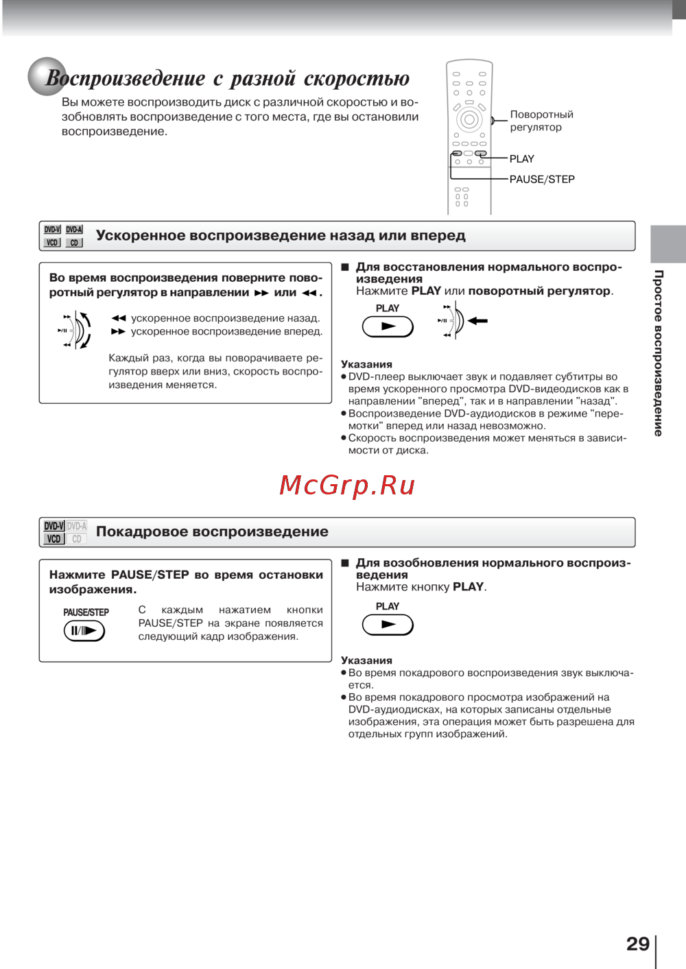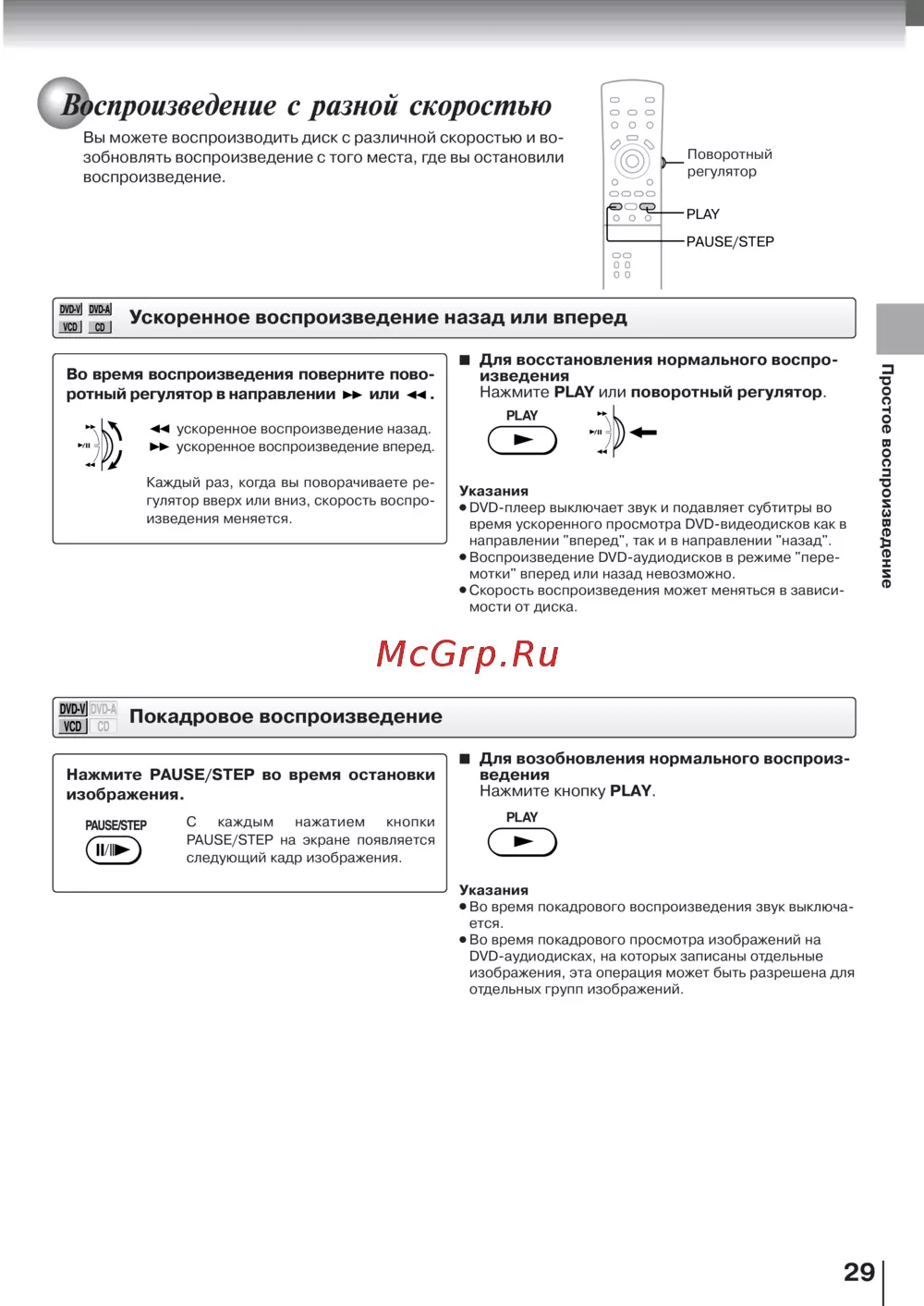 Toshiba SD-9500 [29/72] Ускоренное воспроизведение назад или вперед