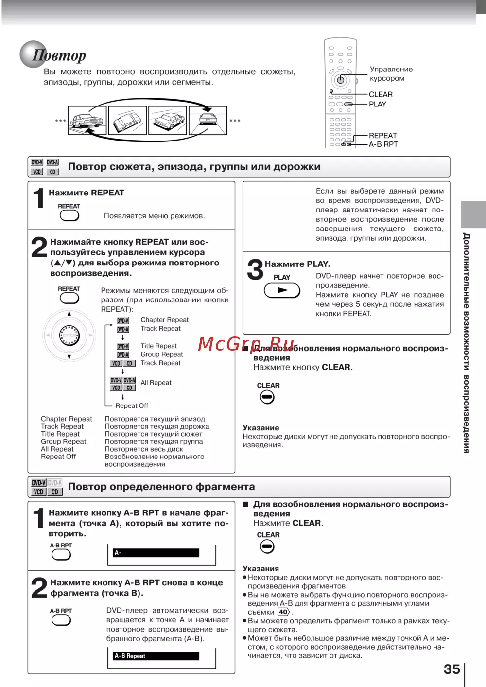 Toshiba SD-9500 [35/72] Повтор сюжета эпизода группы или дорожки