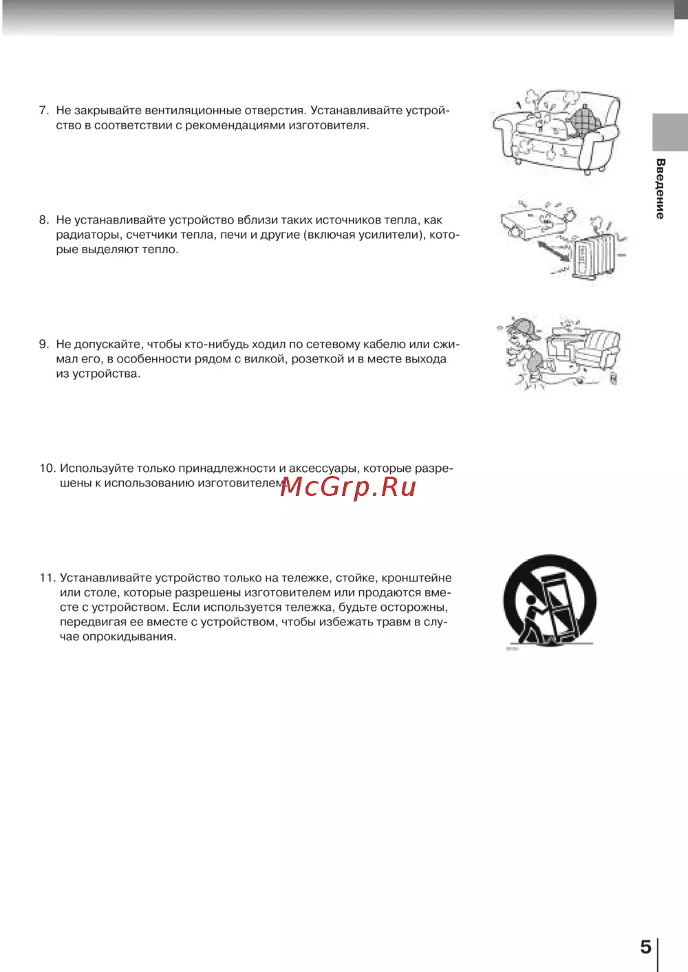 7. Не закрывайте вентиляционные отверстия. Устанавливайте устрой-