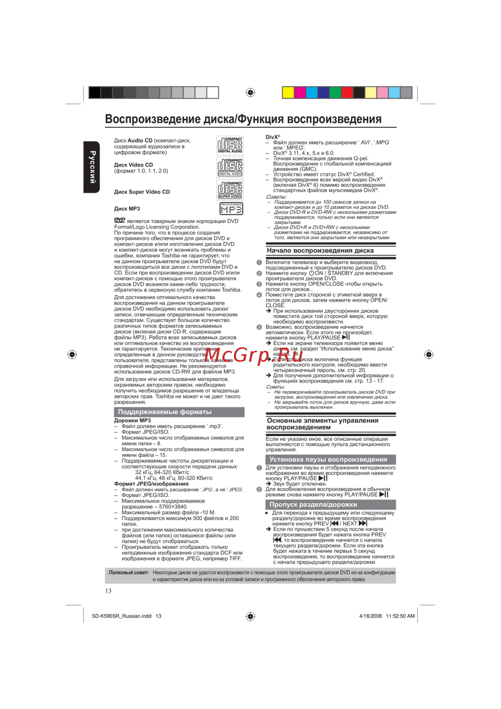 Toshiba SDP73SWRРуководство по эксплуатации -