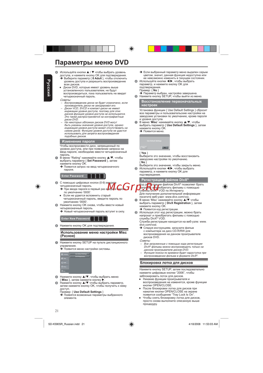 SD-K590SR_Russian.indd 21SD-K590SR_Russian.indd 21 4/18/2008 11:53:03 AM4/18/2008 11:53:03 AM