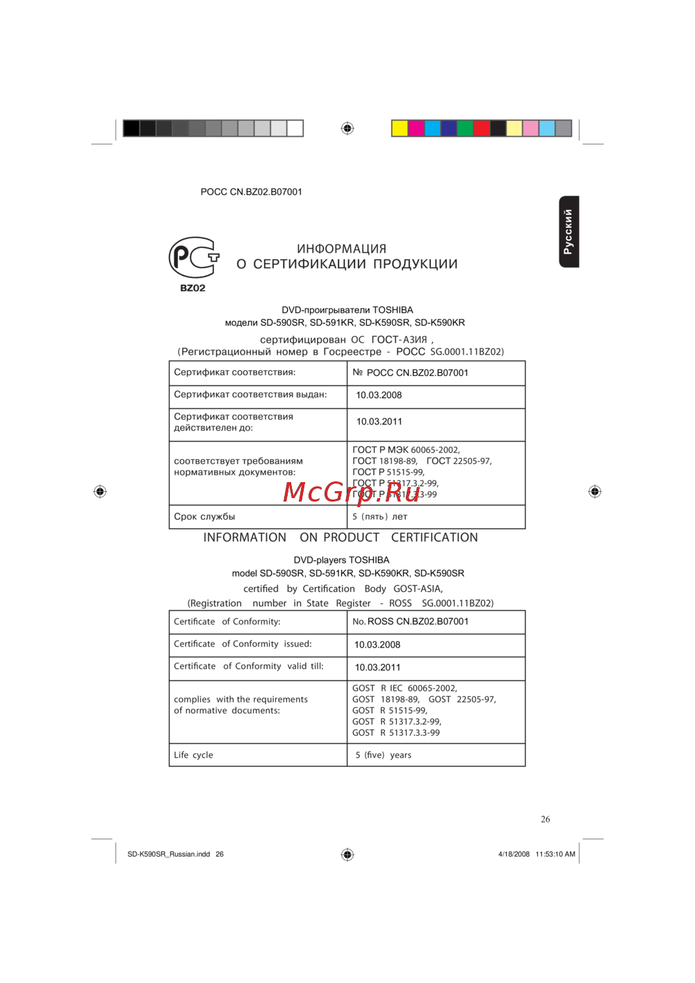 - Certiied by certiication body gost asia registration number in state register ross sg 001 1bz02 p.27