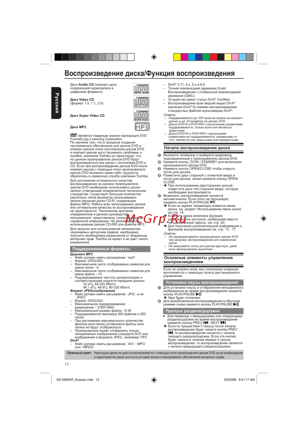 Toshiba SD-K590SR_SD-K590KRРуководство по эксплуатации -