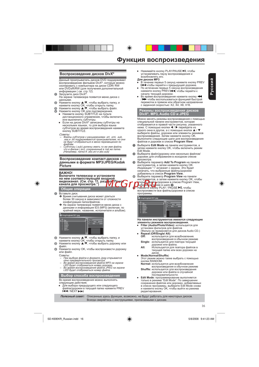 SD-K690KR_Russian.indd 16SD-K690KR_Russian.indd 16 5/8/2008 9:41:23 AM5/8/2008 9:41:23 AM