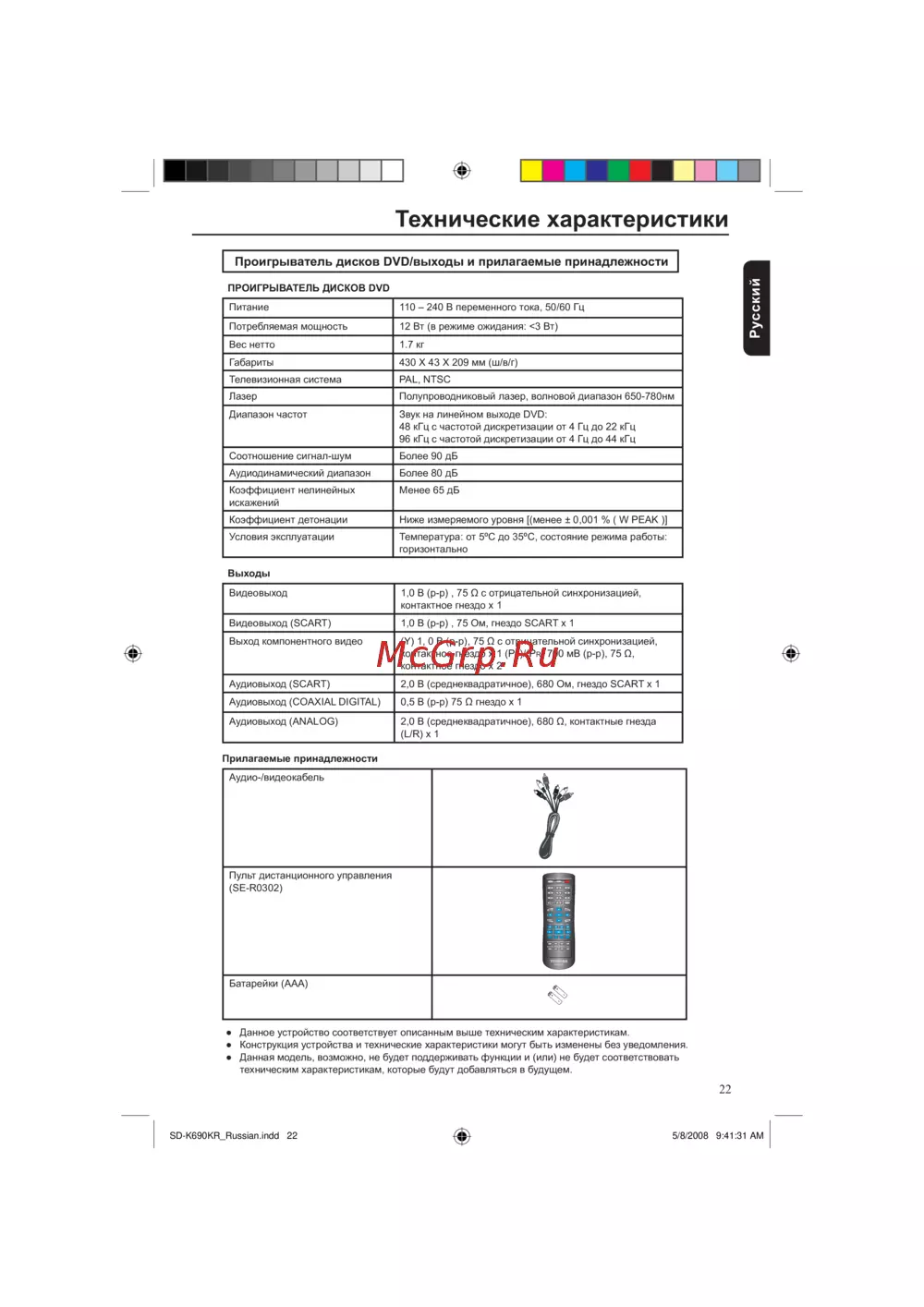 SD-K690KR_Russian.indd 22SD-K690KR_Russian.indd 22 5/8/2008 9:41:31 AM5/8/2008 9:41:31 AM