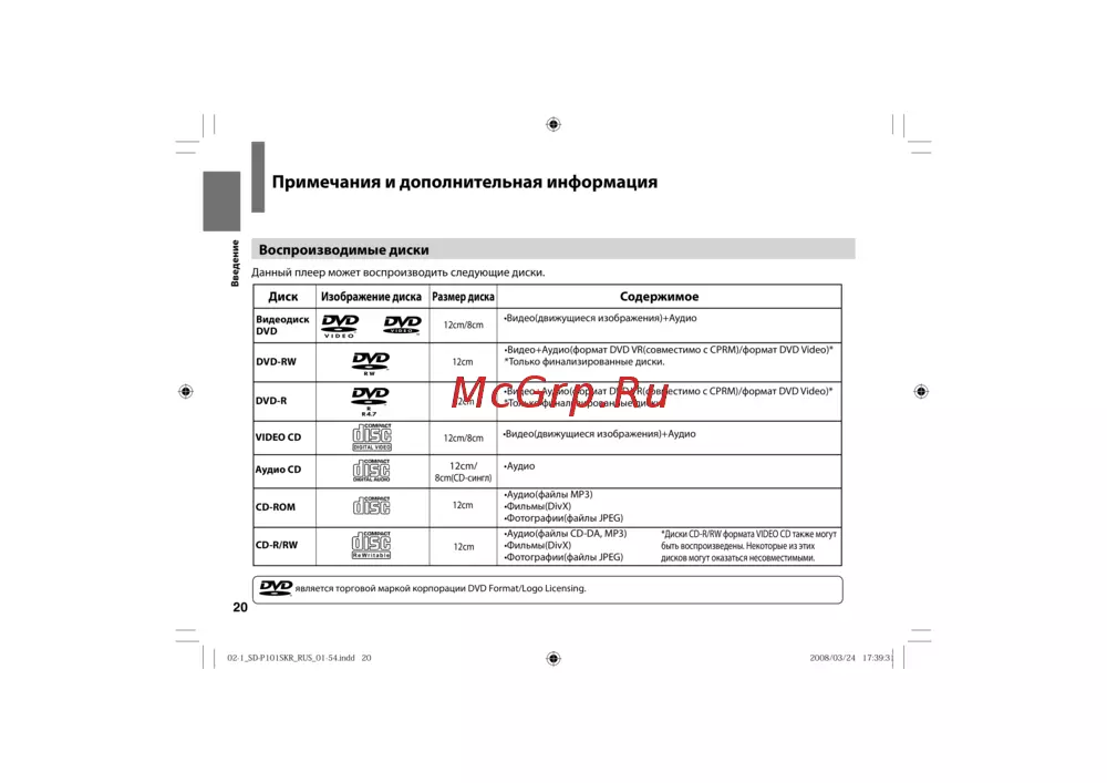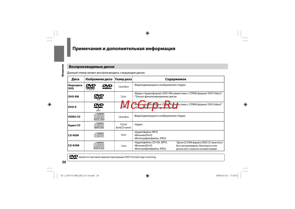 - Воспроизводимые диски p.20