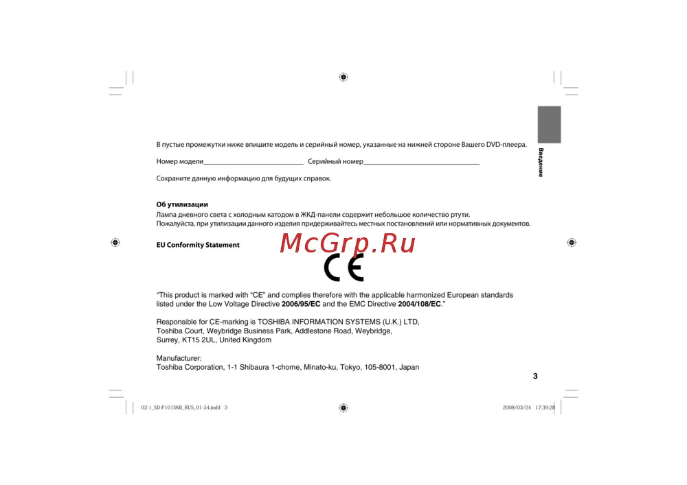 Toshiba SDP73SWRРуководство по эксплуатации -