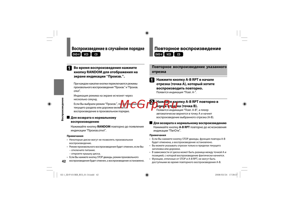 воспроизведение в произвольном порядке.