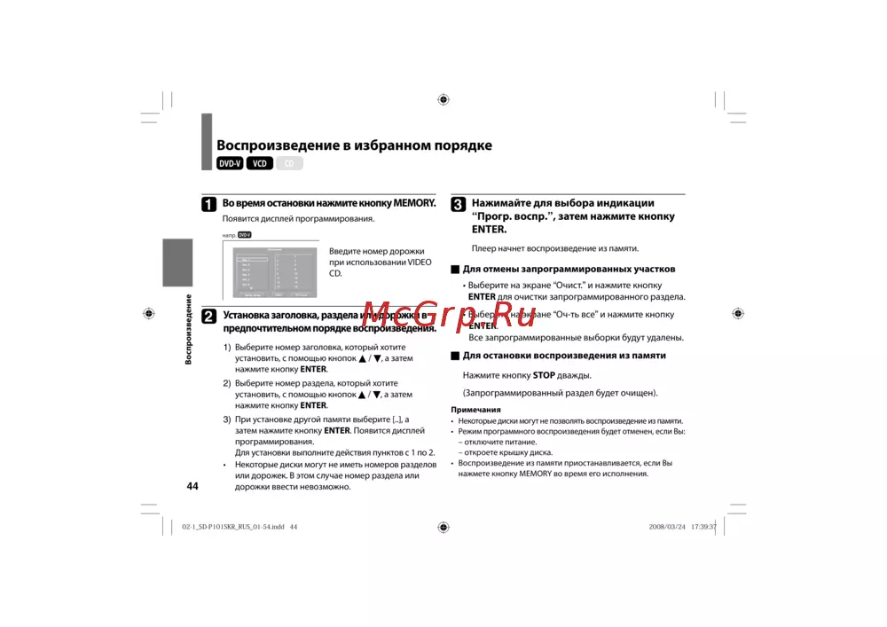 Некоторые диски могут не позволять воспроизведение из памяти.