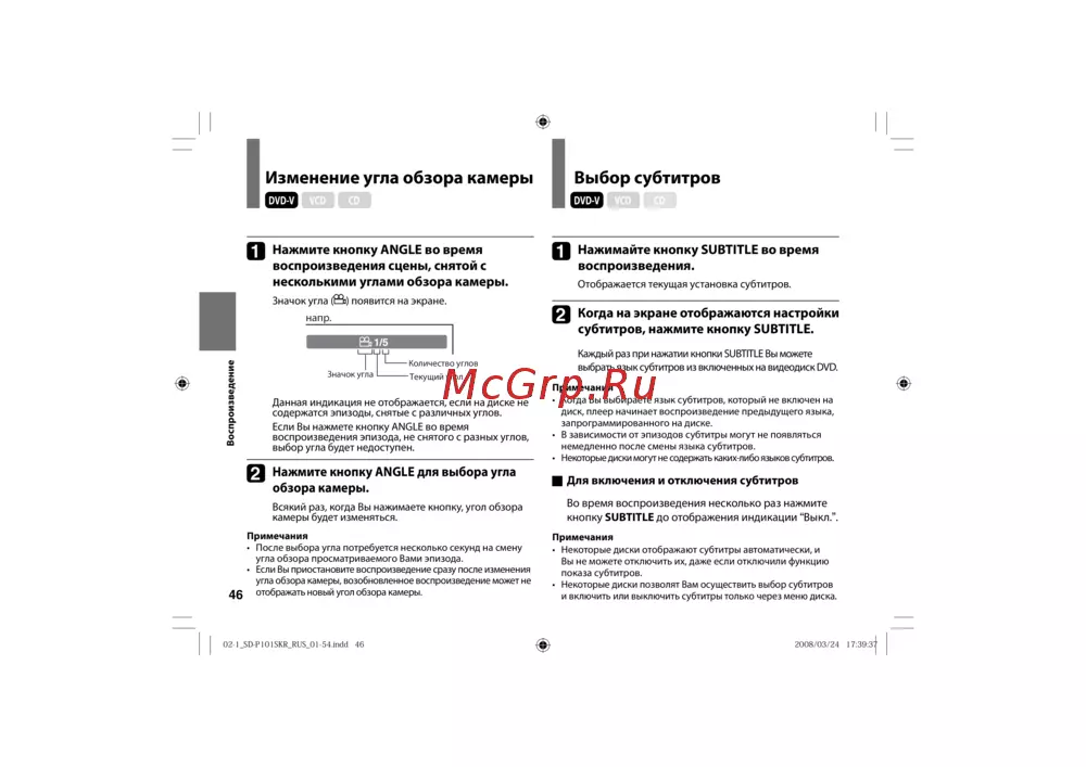Некоторые диски могут не содержать каких-либо языков субтитров.