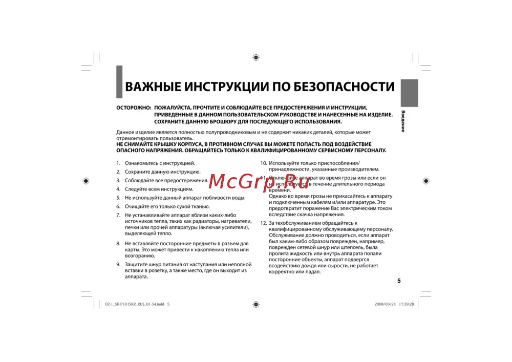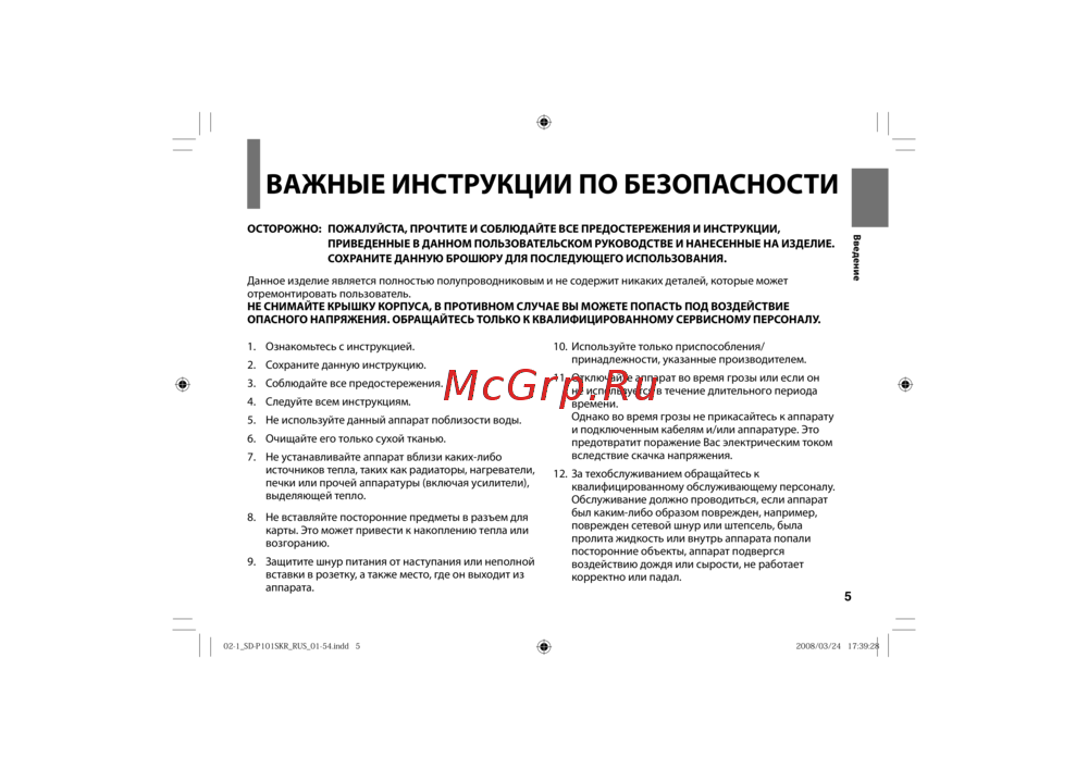ВАЖНЫЕ ИНСТРУКЦИИ ПО БЕЗОПАСНОСТИ