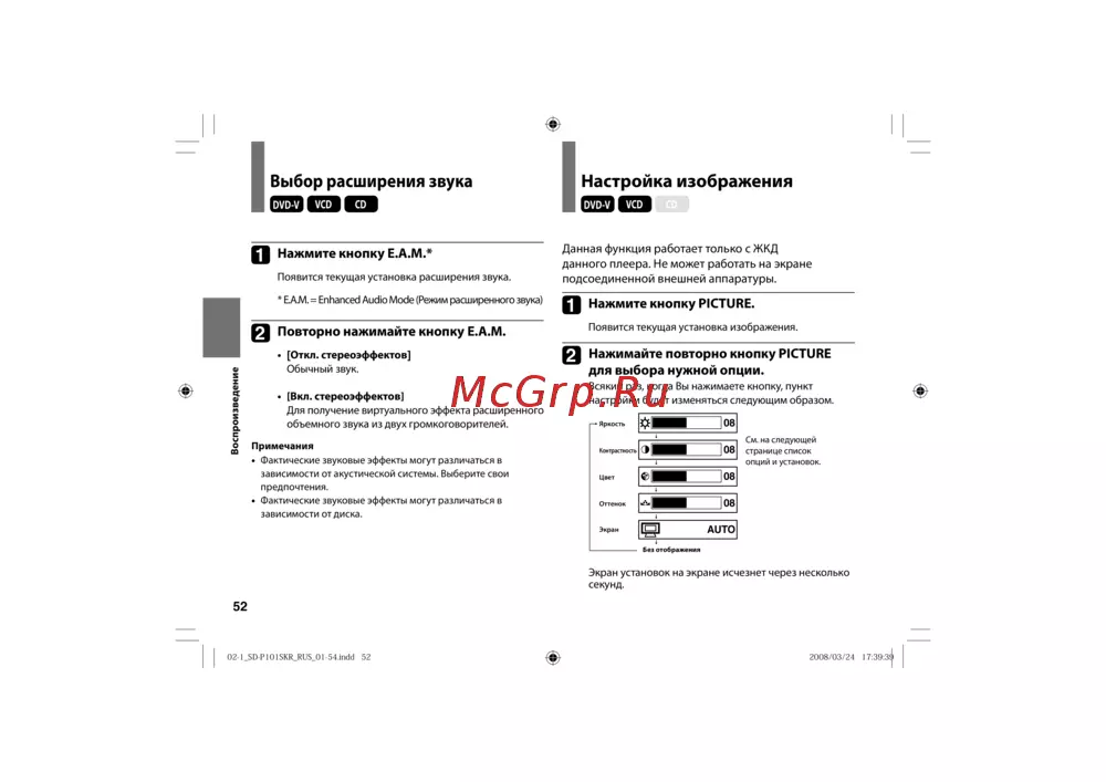 * E.A.M. = Enhanced Audio Mode (Режим расширенного звука)