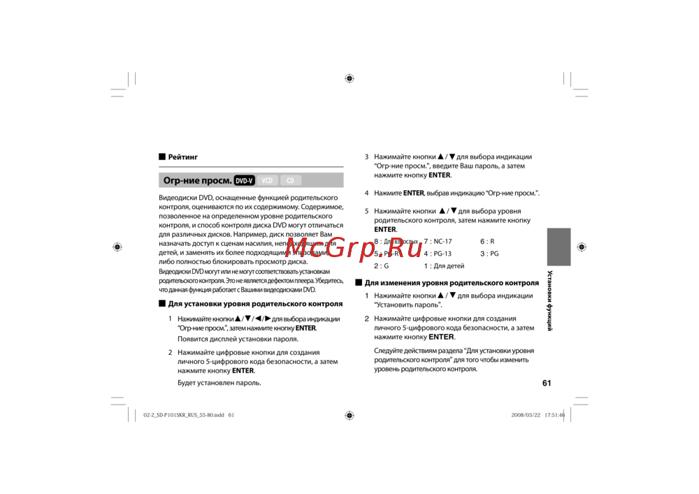 Toshiba SD-P101SKR [61/80] Для установки уровня родительского контроля