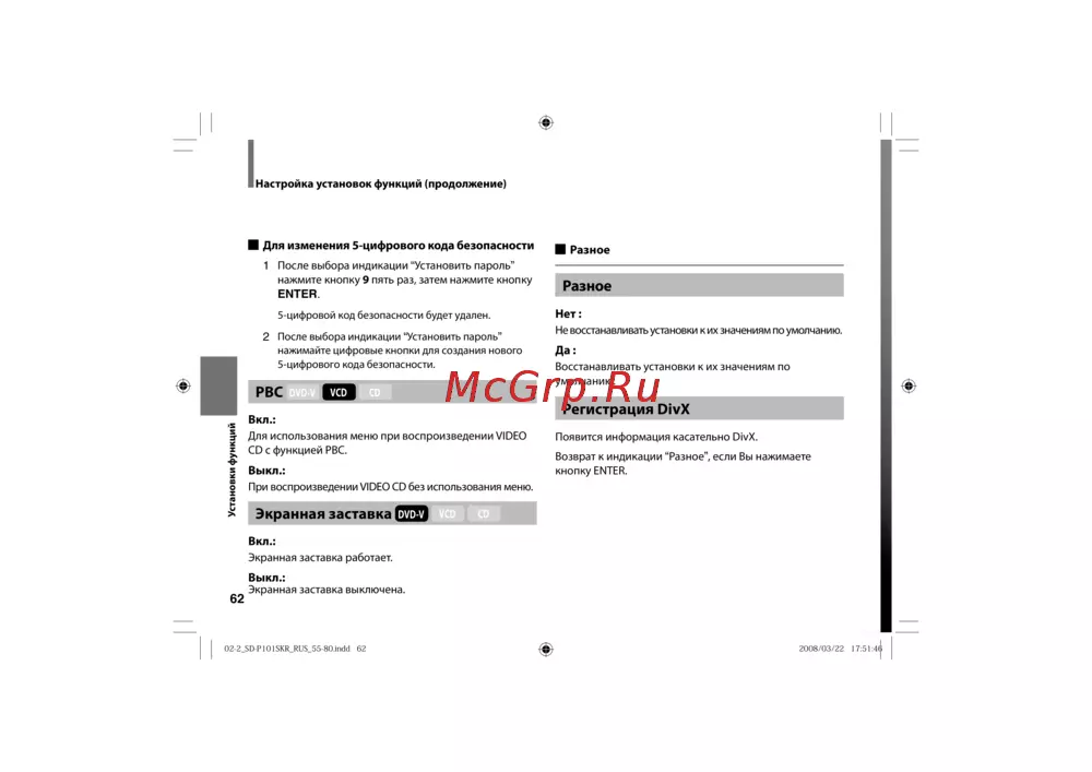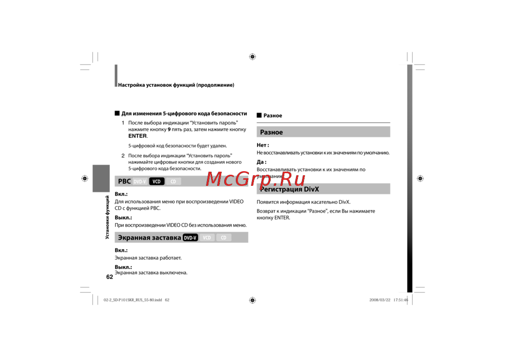 - Данный плеер поддерживает диски video cd с функцией pbc версии 2 pbc является аббревиатурой от playback control управление воспроизведением вы можете наслаждаться двумя видами воспроизведения в зависимости от типа дисков p.21