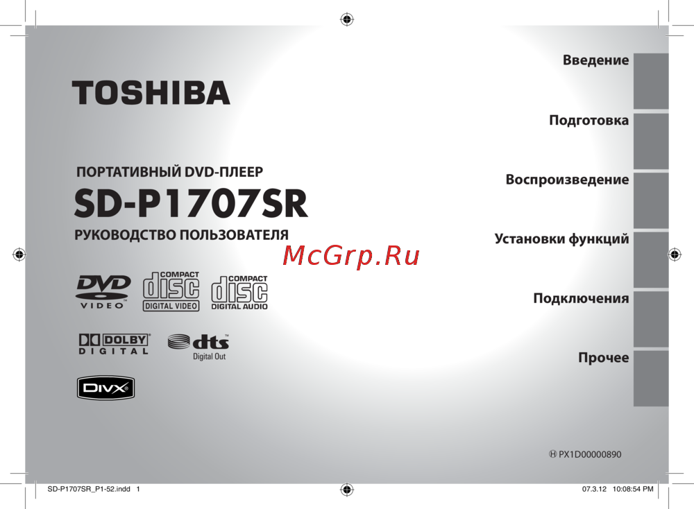 Toshiba SDP73SWRРуководство по эксплуатации -