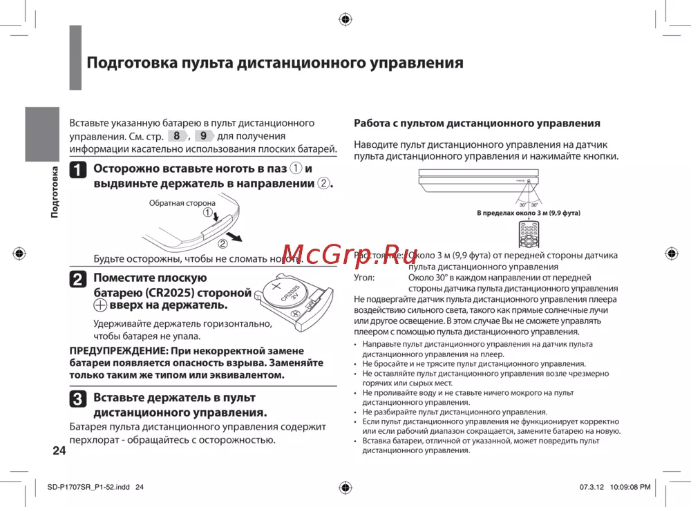 Toshiba SD-P1707SR [24/76] Подготовка пульта дистанционного управления