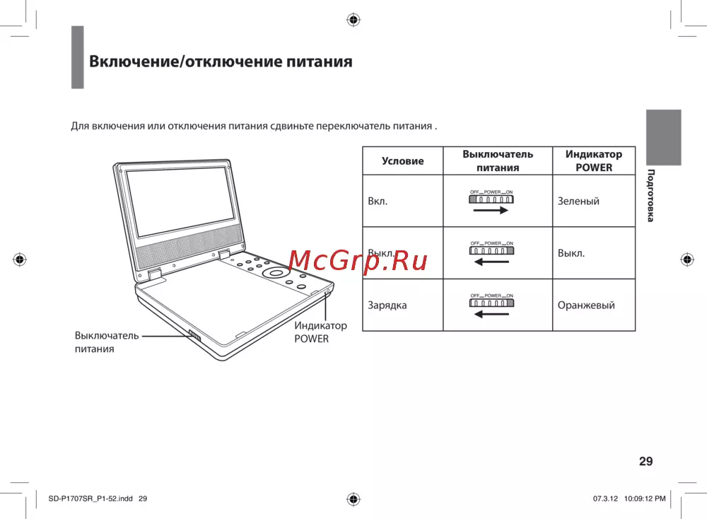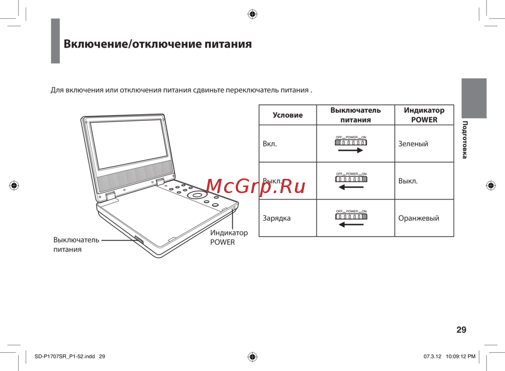 - Включение отключение питания p.29