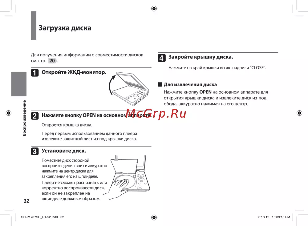 ![Toshiba SD-P1707SR [32/76] Установите диск](/views2/1965845/page32/bg20.png)