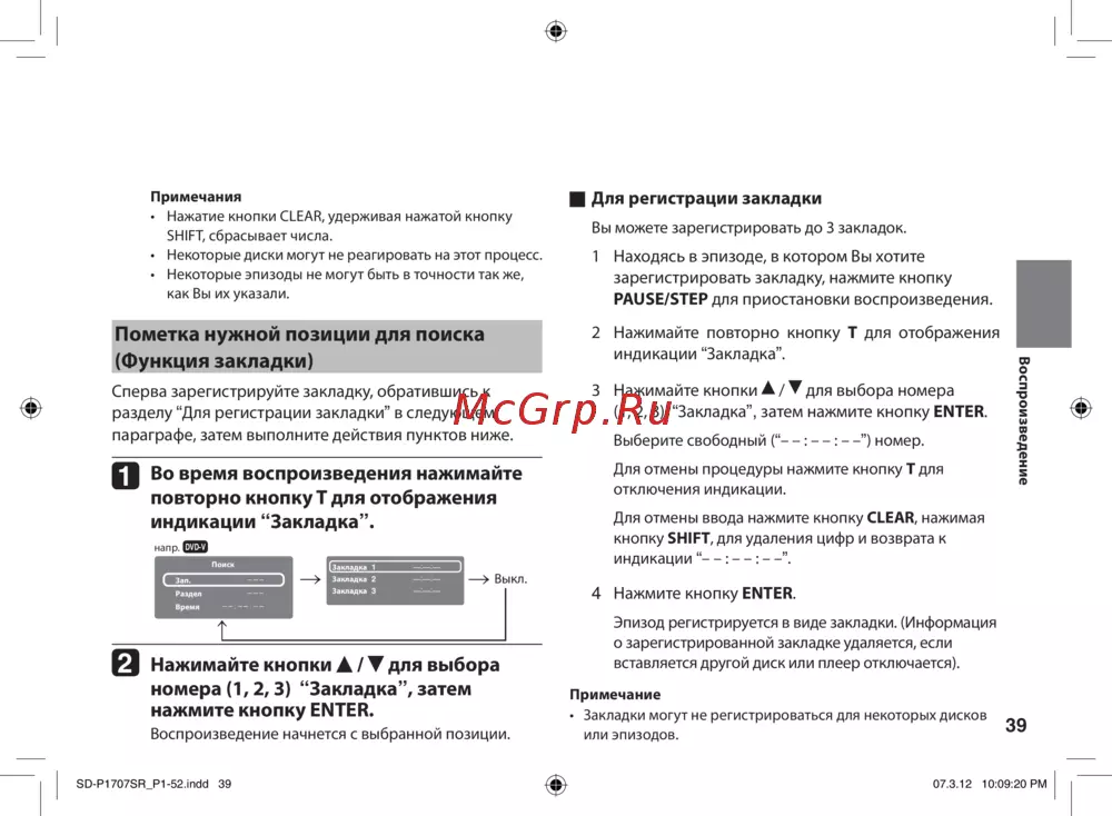 Toshiba SD-P1707SR [39/76] Пометка нужной позиции для поиска функция закладки