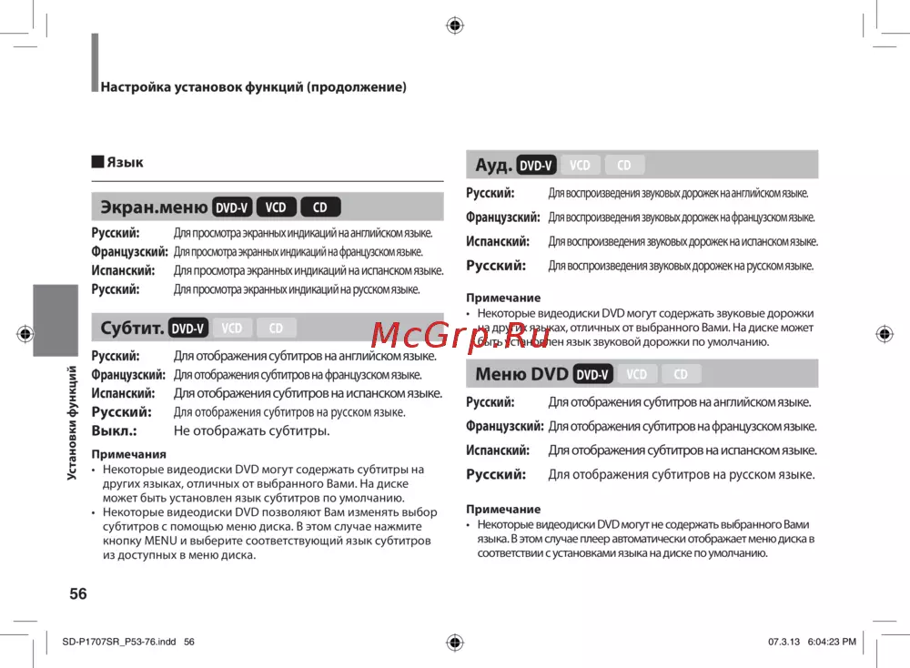 • Некоторые видеодиски DVD могут содержать звуковые дорожки
