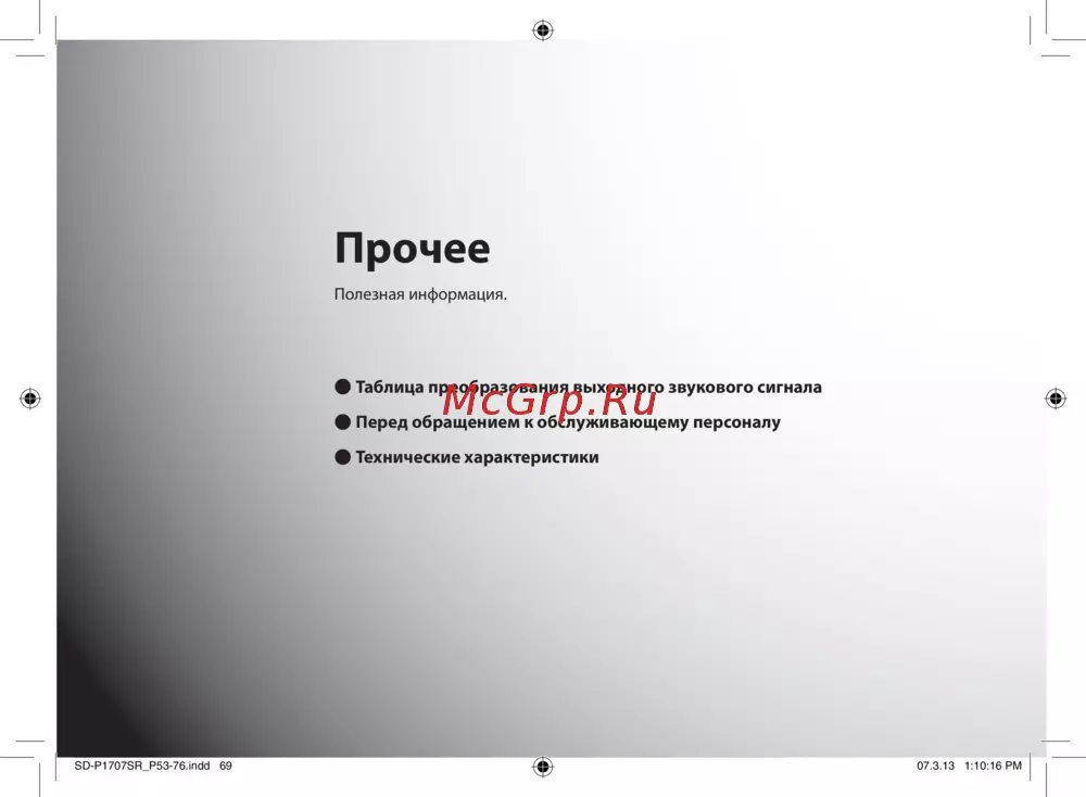 - Таблица преобразования выходного звукового сигнала p.70