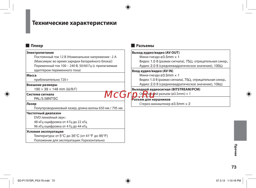 Toshiba SD-P1707SR [73/76] Технические характеристики
