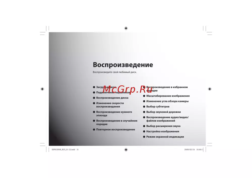 Toshiba SDP63SWR [31/76] Воспроизведение