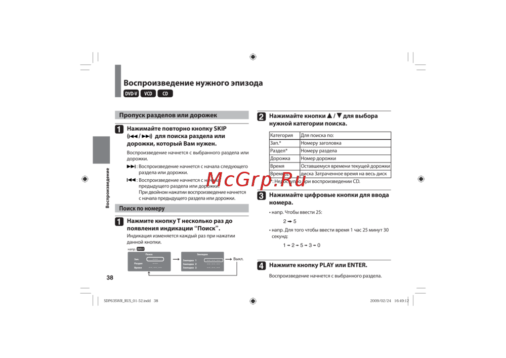 Toshiba SDP63SWR [38/76] Воспроизведение нужного эпизода