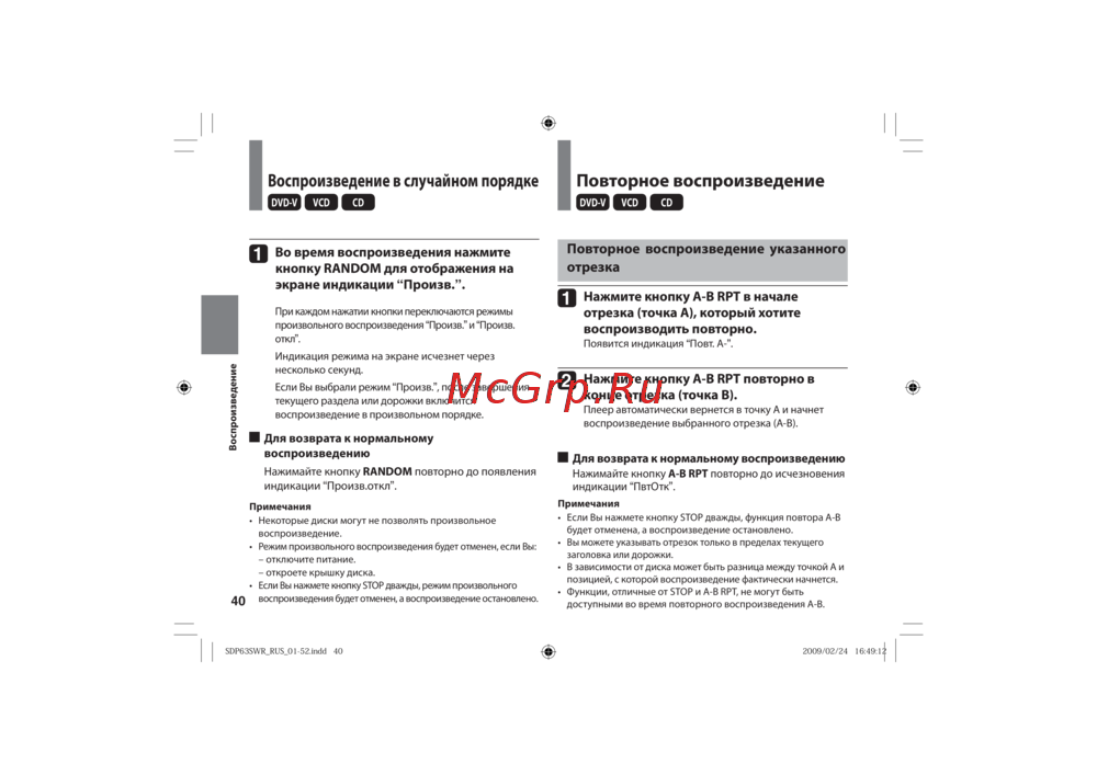 • Функции, отличные от STOP и A-B RPT, не могут быть