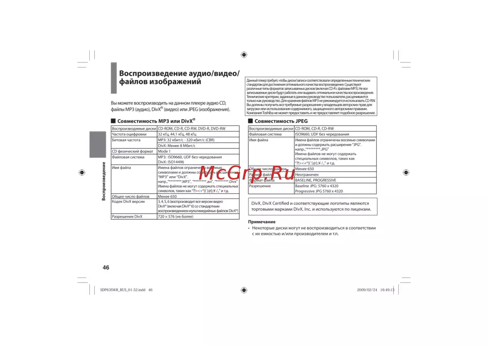 Toshiba SDP63SWR [46/76] Совместимость mp3 или div