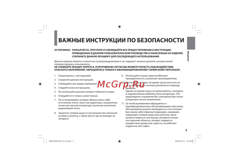 Toshiba SDP63SWR [5/76] Важные инструкции по безопасности