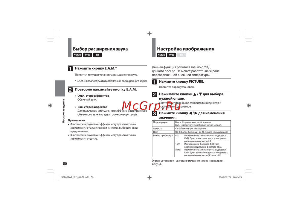 * E.A.M. = Enhanced Audio Mode (Режим расширенного звука)