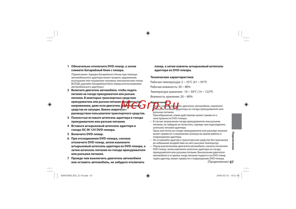 - Для использования dvd плеера в автомобиле данный адаптер может обеспечивать dvd плеер электропитанием от гнезда прикуривателя p.66