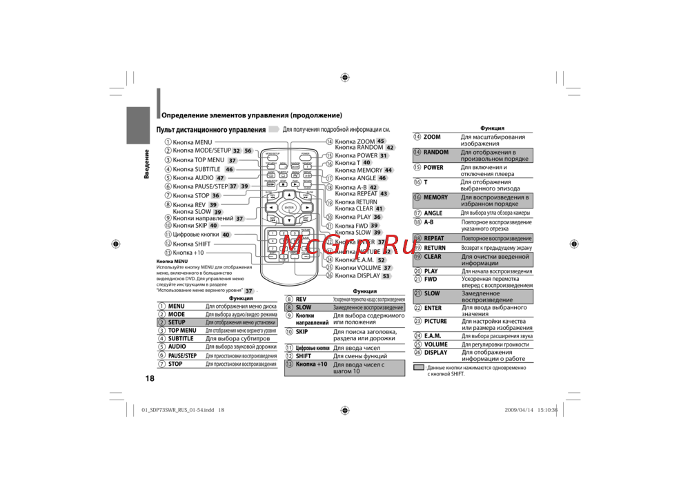 Toshiba SDP73SWR [18/80] Пульт дистанционного управления