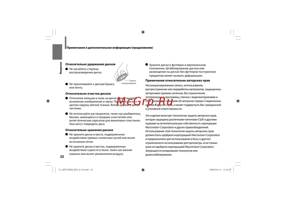 - Относительно хранения дисков p.22