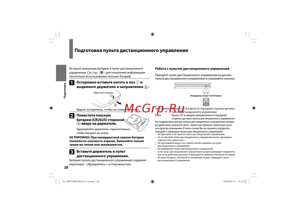 Toshiba SDP73SWR [26/80] Подготовка пульта дистанционного управления