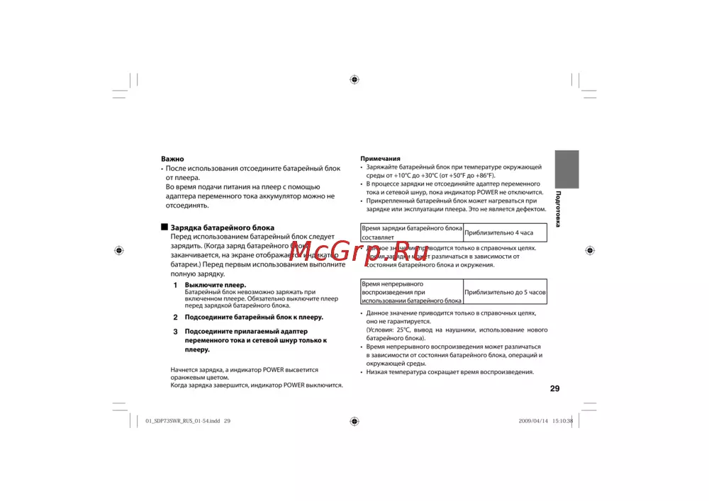 зарядке или эксплуатации плеера. Это не является дефектом.