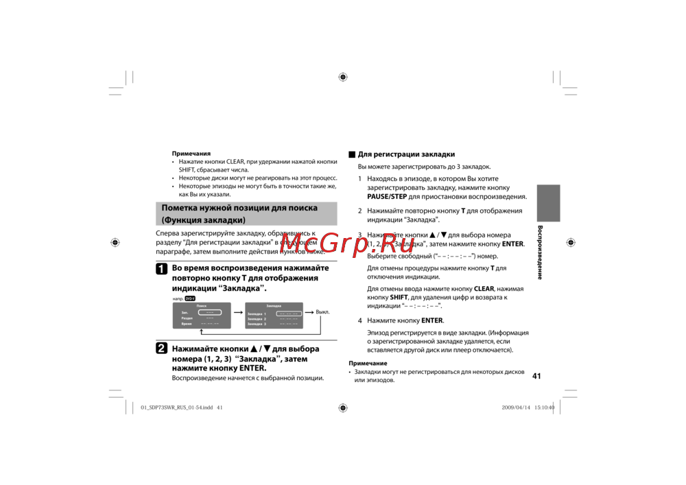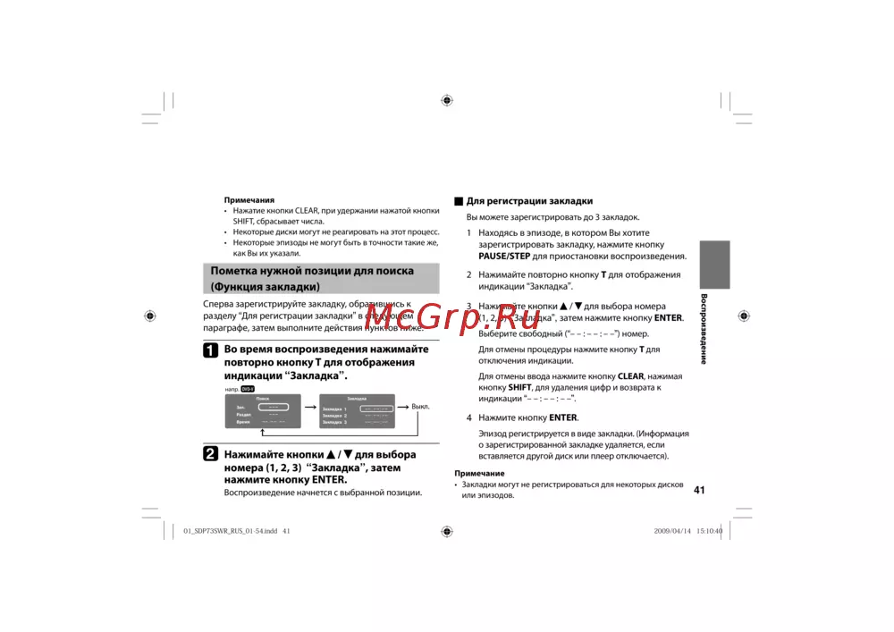 Toshiba SDP73SWR [41/80] Пометка нужной позиции для поиска функция закладки
