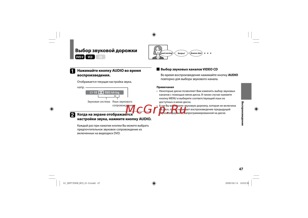 • Некоторые диски позволяют Вам изменять выбор звуковых