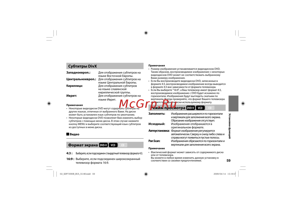 • Некоторые видеодиски DVD могут содержать субтитры на