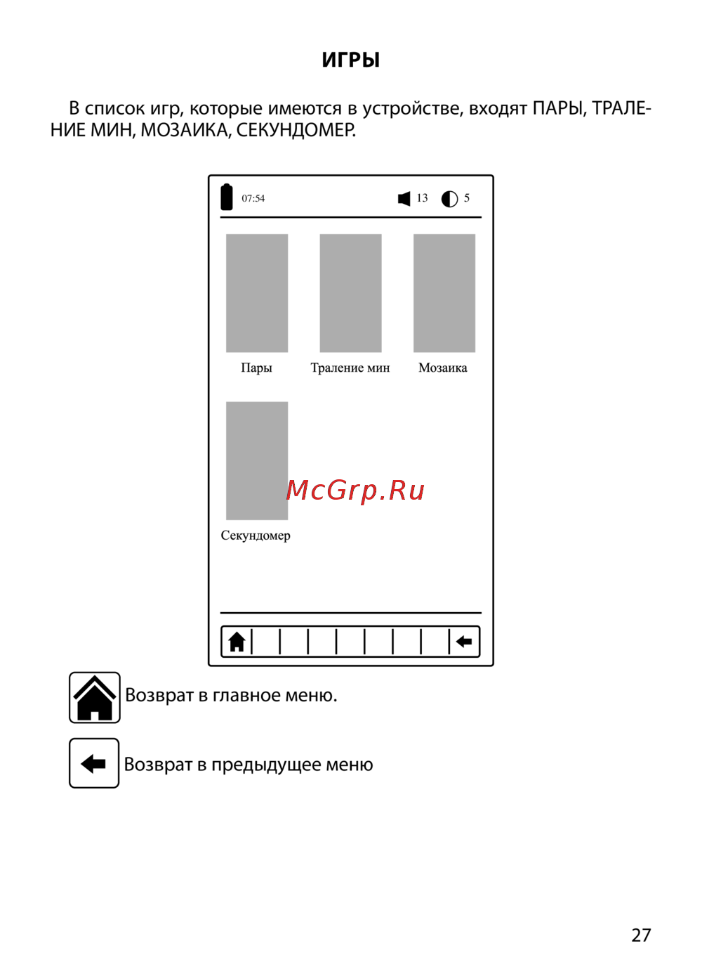 В список игр, которые имеются в устройстве, входят ПАРЫ, ТРАЛЕ-