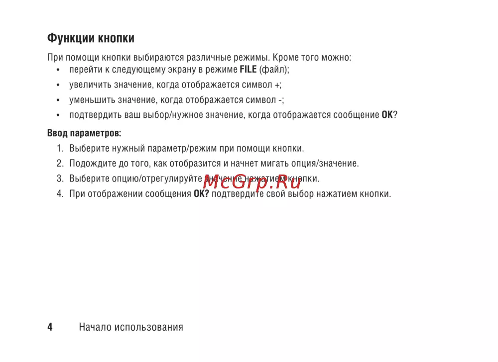 1. Выберите нужный параметр/режим при помощи кнопки.
