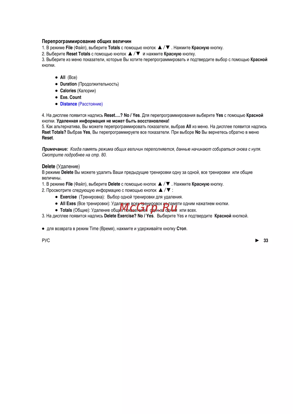 Rset Totals? Выбрав Yes, Вы перепрограммируете все показатели. При выборе No Вы вернетесь обратно в меню