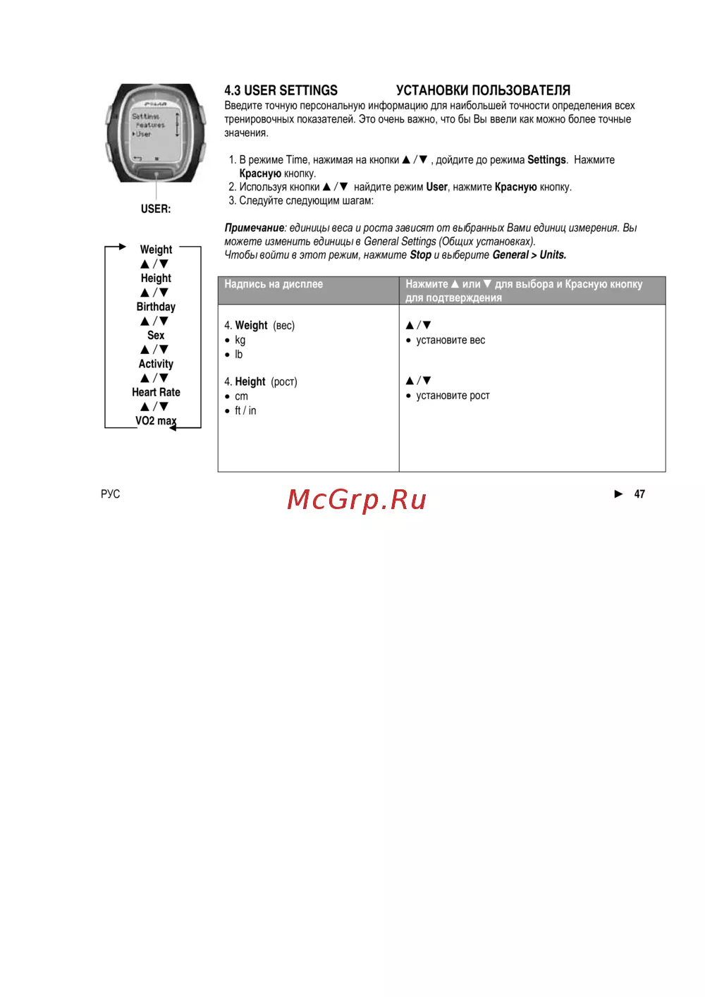 Polar RS300X GPS [48/84] User settings установки пользователя