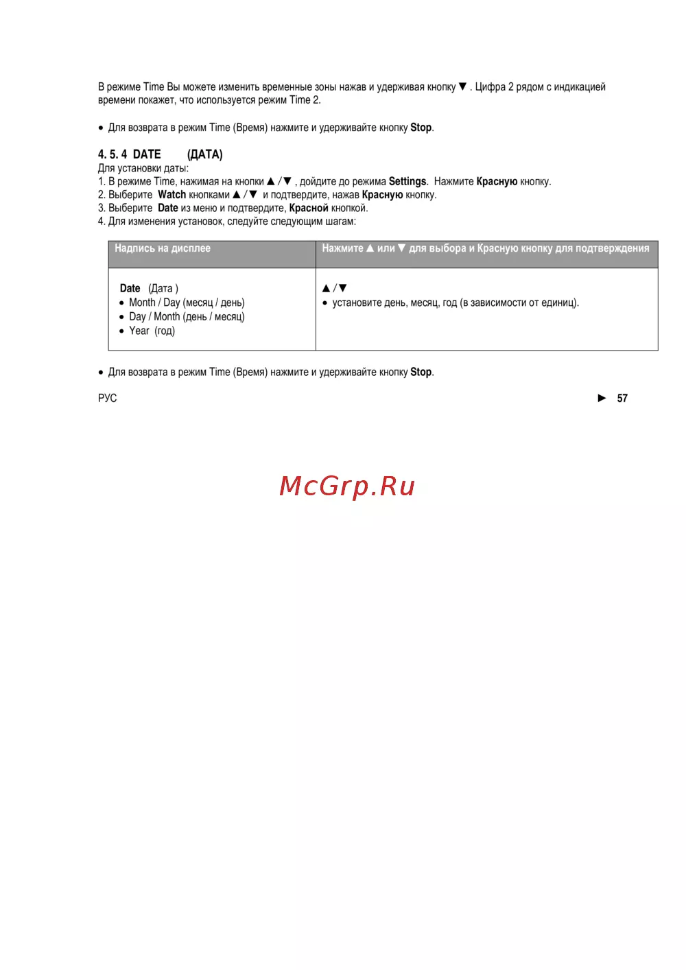 В режиме Time Вы можете изменить временные зоны нажав и удерживая кнопку ▼. Цифра 2 рядом с индикацией