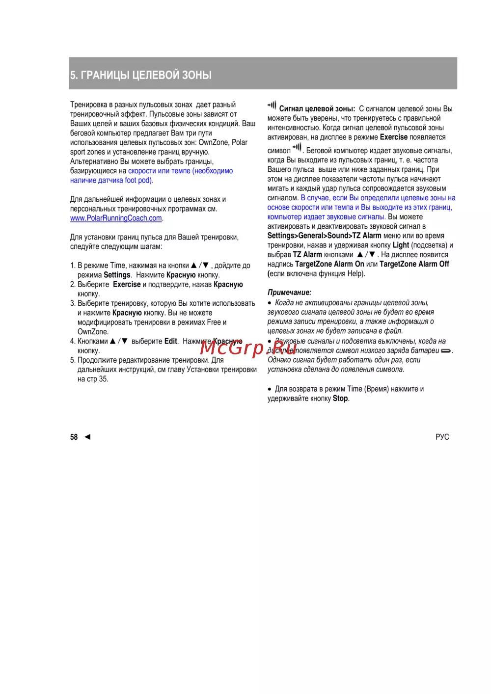 Polar RS300X GPS [59/84] Границы целевой зоны