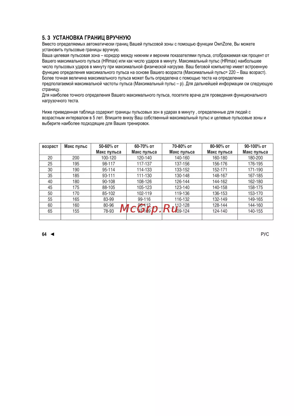 - Предполагаемая максимальная частота пульса hrmax p p.66